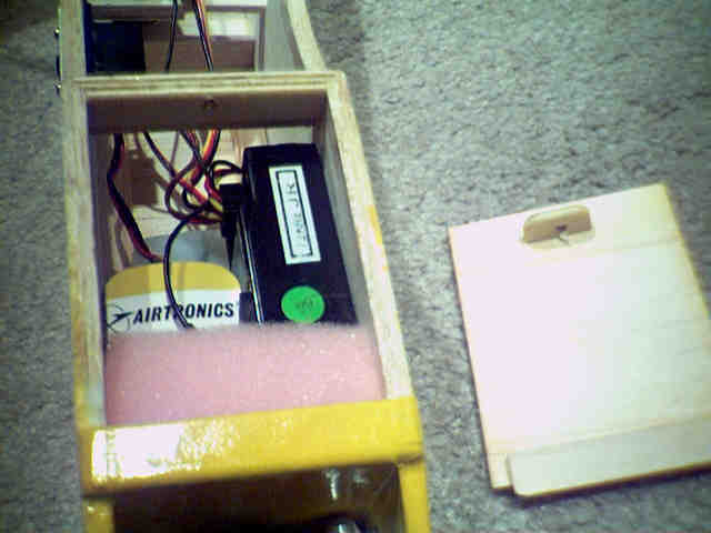 FlyingYou have to hold the plane behind the wing, which means it wants to tip forward. Important that your hands and fueslage are not too greasy when doing this. A gentle launch will sent the plan off on it's way. It's pretty fast, so it responds to small movements in the control surfaces. Particularly the aileron. Since it only flies at full speed, that makes the first trimming flight a little hairy. I noticed on race day that a number of planes dropped low enough after launch to hit the ground before acheiving flying speed. I didn't suffer that. My technique is to expect to put on full up elevator after launch, and let it off as the plane gains speed. This seems to work very well. On the first flight, the problem was really wrestling with the aileron trim while the plane was soaring to an alitude so safe that it was hard to figure out what the plane was doing ! You can't throttle back to descend with these things. |